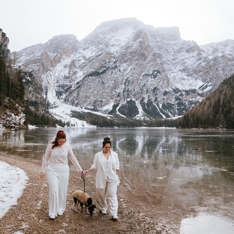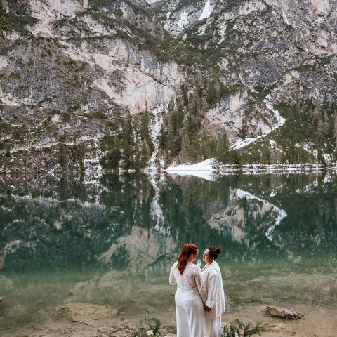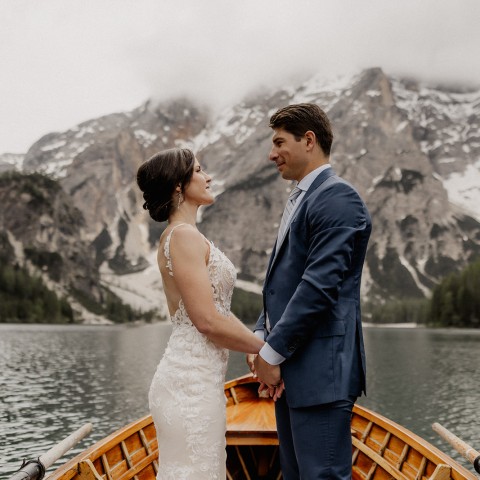 Der Pragser Wildsee (Lago di Braies) mit seinem türkisfarbenen Wasser und der berühmten Holz-Palafitta zählt zu den begehrtesten Hochzeits- und Elopement-Locations in den Dolomiten. Ob intime Trauung zu zweit, symbolische Zeremonie bei Sonnenaufgang oder kleine Hochzeit inmitten der Natur – dieser Ort ist einzigartig.