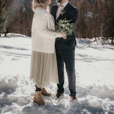 The truth is, traditional bridal heels are rarely the best choice for an outdoor wedding in the mountains. Grass, gravel, rocky trails, snow, wooden terraces and alpine paths are not designed for stilettos.