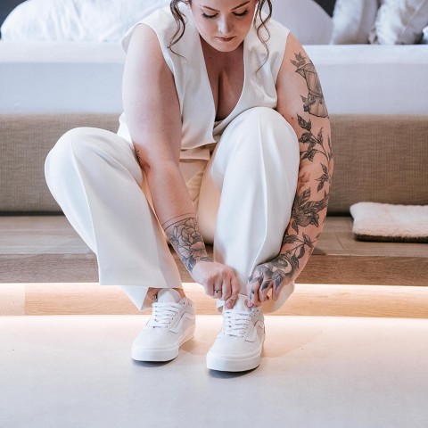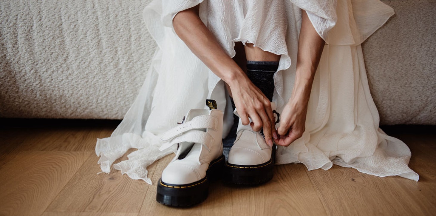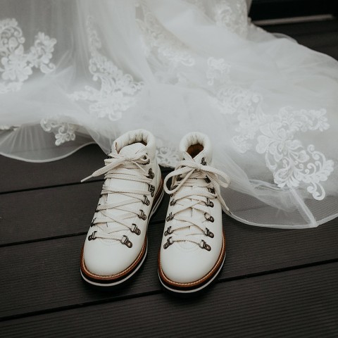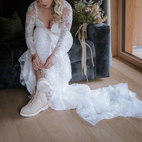 That’s why more and more brides are choosing alternative bridal shoes like sneakers, boots and even hiking boots — especially for weddings in the Dolomites and the Italian Alps.